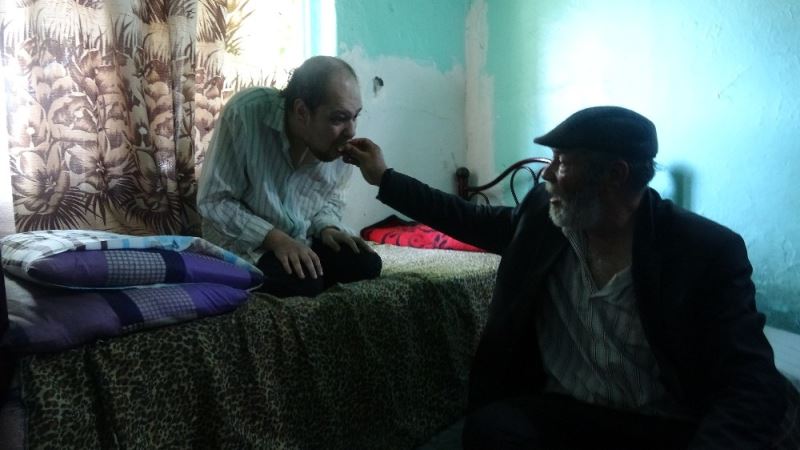 Vefakar baba, 36 yıldır tek başına engelli oğluna bakıyor