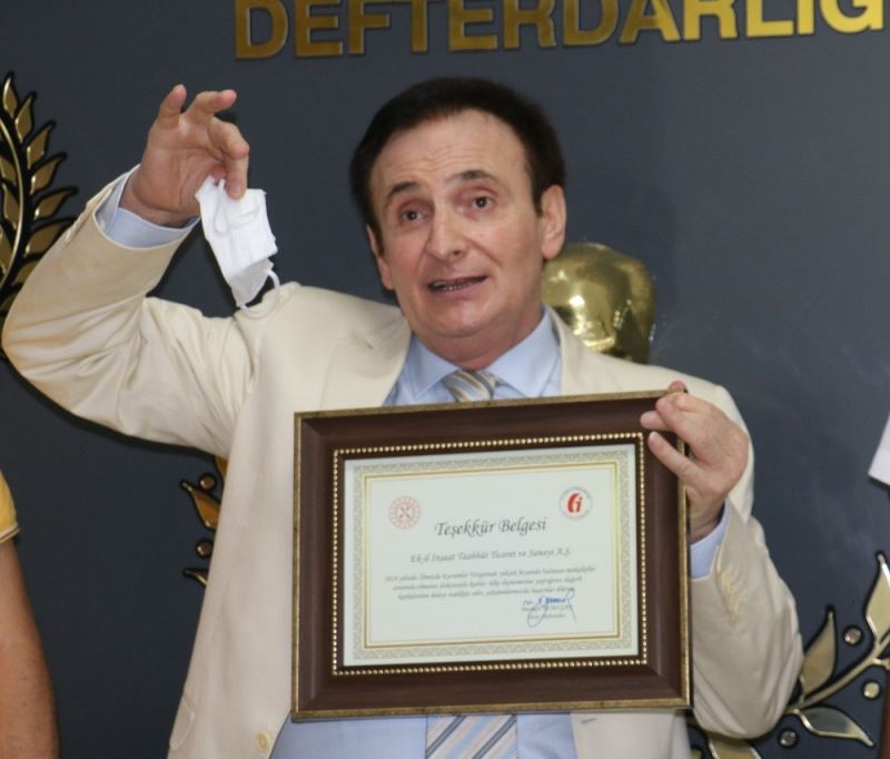 Sivas’ta Vergi rekortmenleri sıralamasında 3’üncü sırada yer alan Ekrem Ekşi, Sivas Defterdarlığı tarafından verilen teşekkür belgesini pandemi dolayısı ile bireysel olarak düzenlenen törenle aldı.