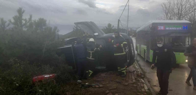Kocaeli’nin Dilovası ilçesinde virajı alamayan hafif ticari aracın takla atarak devrilmesi neticesinde meydana gelen kazada 2 kişi yaralandı.