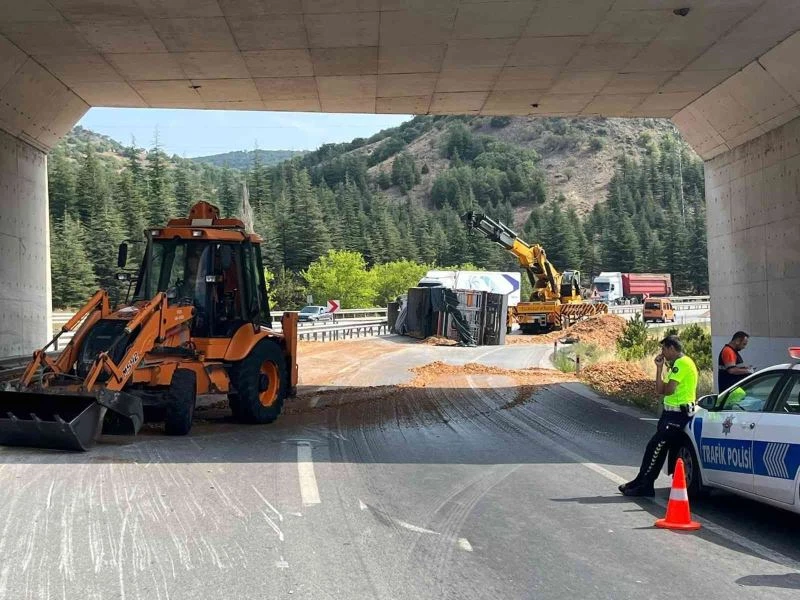 Kütahya’da sık sık kazaların meydana geldiği Ilıca Kavşağı’nda, bugün bir kaza daha yaşandı. Virajı alamayan kamyon yan yattı. Trafik kazasınedeniyle uzun kuyruk oluştu.