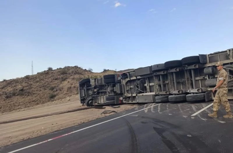 Doğubayazıt-Iğdır yolunda seyir halinde olan tır, virajı alamayınca devrildi.