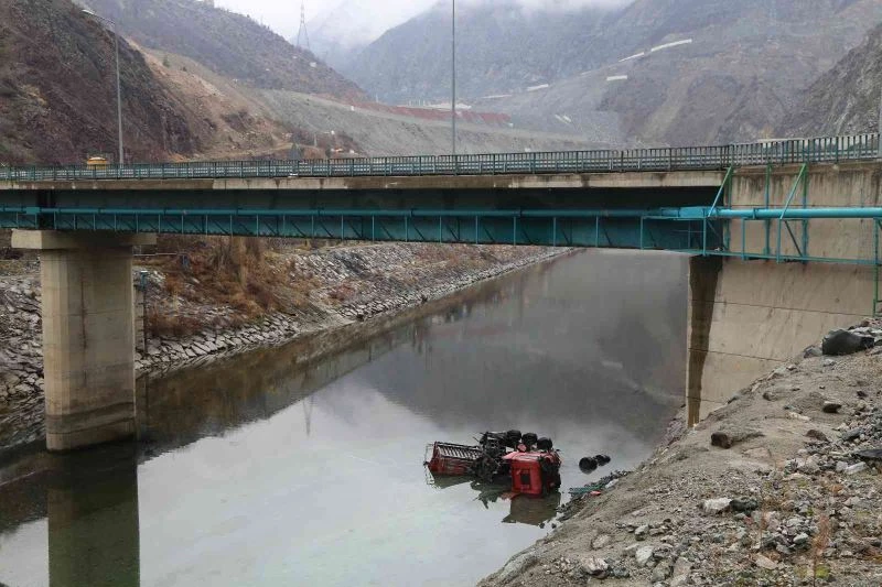 Artvin’de virajı alamayan tır, devrilerek köprüden Çoruh Nehri’ne düştü. Nehir sularında kaybolan sürücü, ekipler tarafından baraj kapakları kapatılınca bulundu.