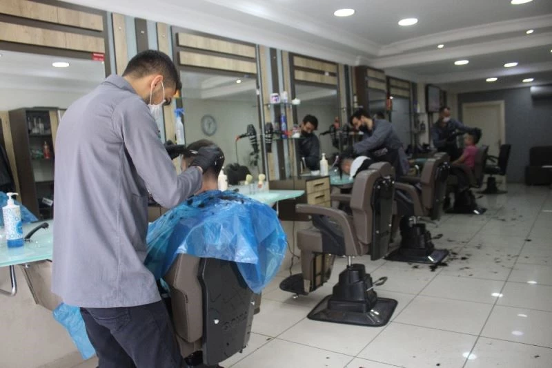 Virüs testi negatif çıkan kuaför esnafı faaliyetlerini sürdürüyor