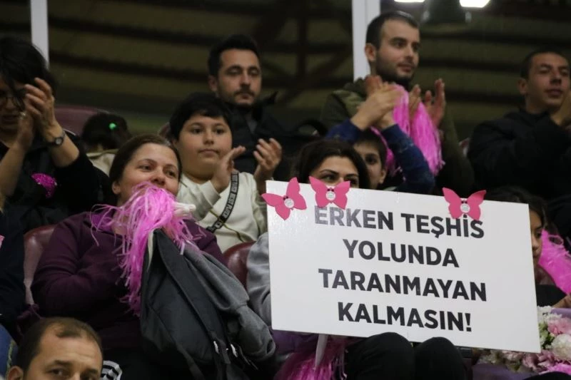 Voleybol müsabakasında meme kanserine dikkat çektiler