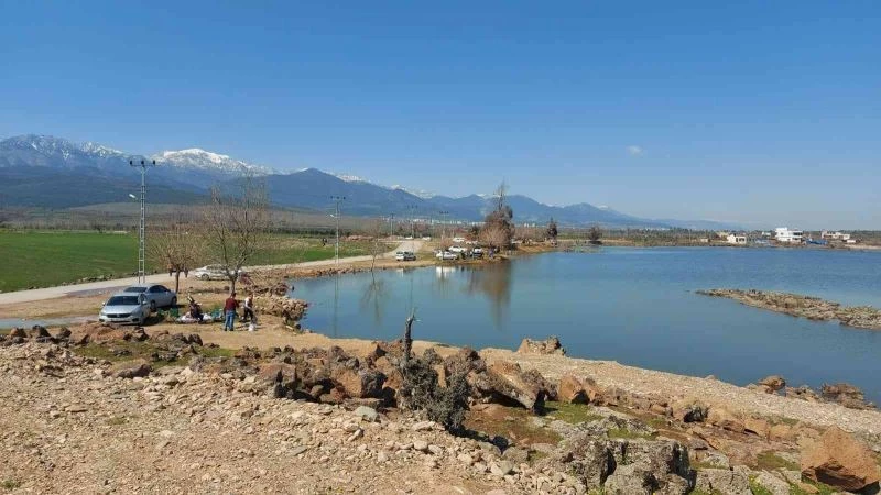 Hatay’ın Hassa ilçesindeki volkanik Haydarlar Gölü, hafta sonları piknikçilerin akınına uğruyor.