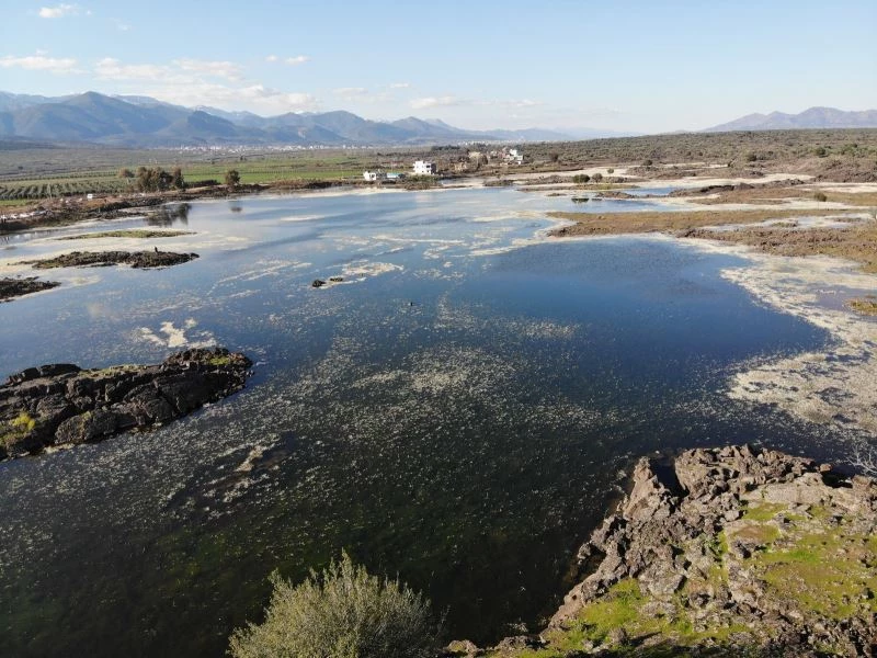 Hatay’ın Hassa ilçesinde asırlar öncesinde volkanik patlama sonucu meydana gelen kayaların arasında oluşan Haydarlar Gölü, görenleri kendine hayran bırakıyor.