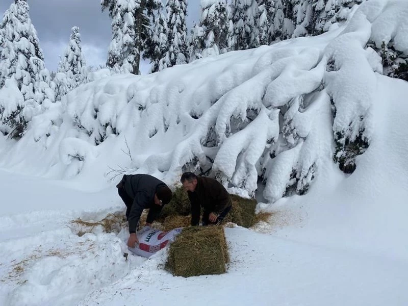 DÜZCE – Düzce’nin yüksek kesimlerinde kar kalınlığı 70 santimetrelere kadar ulaştı. Doğal hayatta yaşayan hayvanların yem bulma sorunu yaşaması sonrasında ekipler yüksek kesimlere yem bıraktı.