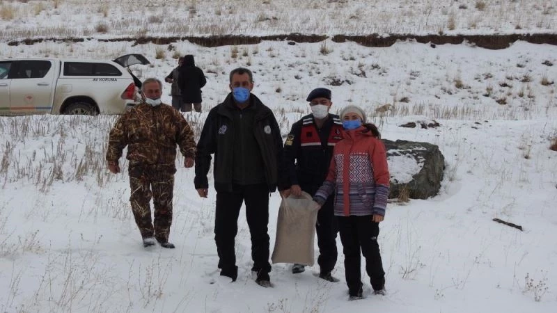 Aşkale’de zorlu kış şartlarında beslenme zorluğu çeken yaban hayvanları için doğaya çeşitli yemler bırakıldı.
