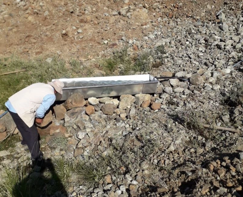 Adıyaman’ın Kahta ilçesinde kırsal bölgelerde yaşayan yaban hayvanları için su tenekeleri bırakıldı.
