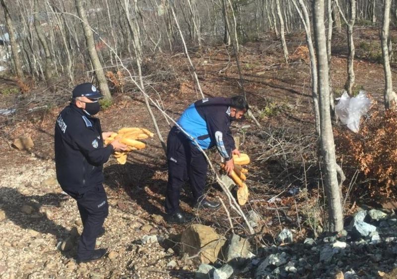 Osmaniye’nin Düziçi ilçesinde kar yağışı nedeniyle yiyecek bulmakta zorluk çeken yaban hayvanları için doğaya ekmek bırakıldı.