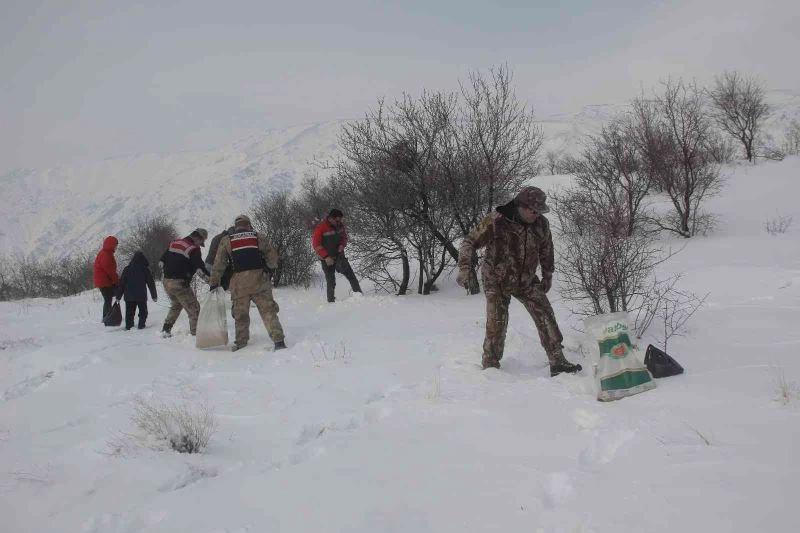 Erzincan’da çetin kış şartları nedeniyle yiyecek bulmakta zorlanan yaban hayvanları için karla kaplı doğaya yem bırakıldı.