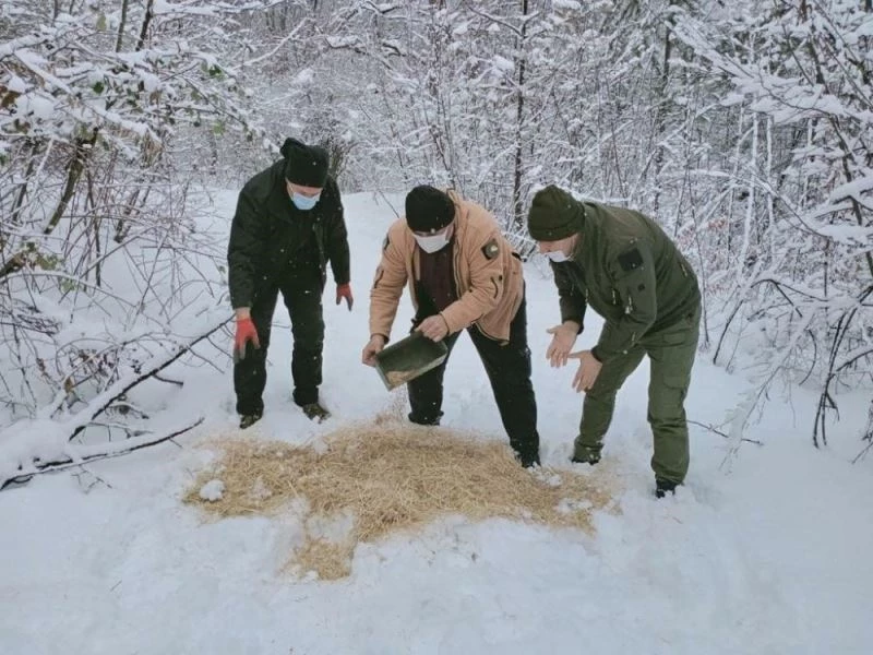 Yaban hayvanları için ormanlık alana yem bırakıldı