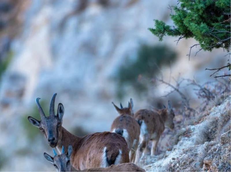 Erzincan’da avlanması yasak ve koruma altında olan yaban keçileri, Munzur Dağları’ndaki yaylalarda beslenirken görüntülendi.