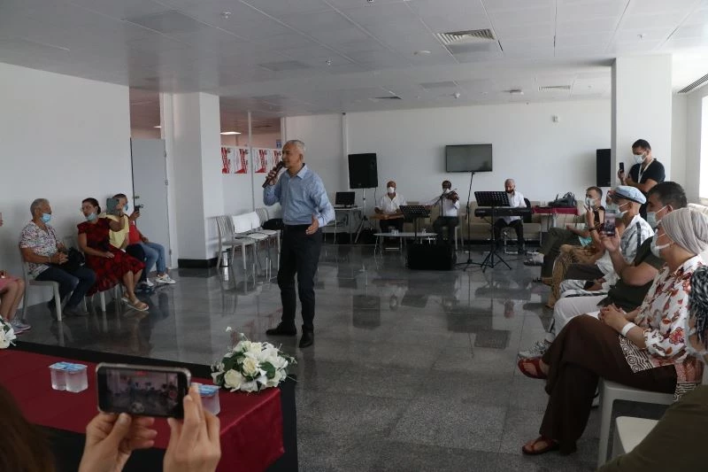 Mersin Şehir Eğitim ve Araştırma Hastanesi’ne gelen yabancı hastalar, şifa bulurken yapılan etkinliklerle de moral depoluyor. Hastanede tedavi gören hasta ve yakınlarına müzik dinletisi sunuldu.