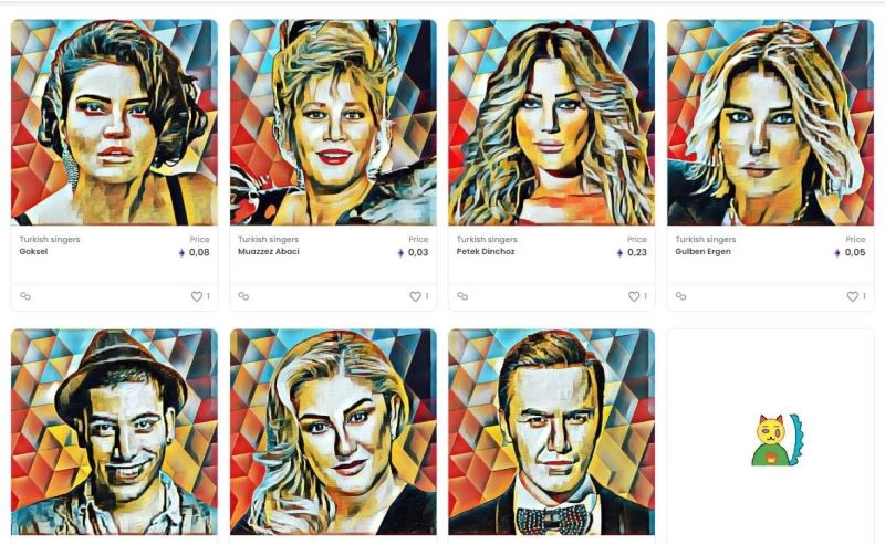 Yaygınlaşan NFT piyasasında Türkiye’den de tanıdık yüzlere rastlandı. Yabancı bir koleksiyoner, Türk sanatçıların NFT’lerini üretti. Opensea platformundan satışa sunulan eserler arasında Aşık Veysel, Tarkan, Emel Sayın, Zeki Müren, Cem Karaca, Ajda Pekkan gibi bir çok isim yer alıyor.