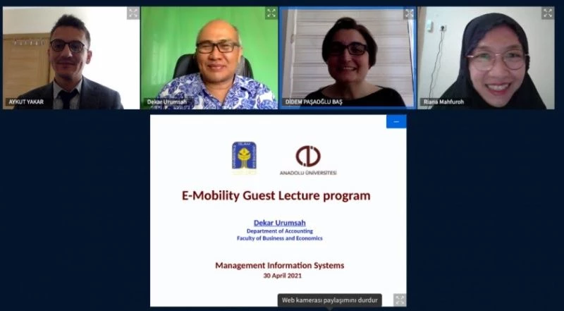 Bu kapsamda, Erasmus+ faaliyeti aracılığıyla Litvanya Vytautas Magnus University’den Mindaugas Samuolaitis, Prof. Dr. Celal Hakan Kağnıcıoğlu’nun Tedarik Zinciri ve Lojistik Yönetimi dersine; Litvanya Mykolas Romeris University’den Dr. Mantas Dilys ise Doç. Dr. Ozan Ağlargöz’ün Business Management dersine katıldılar. Ayrıca, ikili iş birliği protokolleri kapsamında ise Universitas Islam Indonesia’dan dört öğretim üyesi İşletme Bölümü tarafından misafir edildi. Dr. Hendi Yogi Prabowo, Prof. Dr. Seval Selimoğlu’nun Auditing dersinde; Dr. Dekar Urumsah ise Doç. Dr. Didem Paşaoğlu Baş’ın Management Information Systems dersinde öğrencilerle bir araya geldi. Bununla birlikte, Universitas Islam Indonesia’dan misafir edilen diğer öğretim üyeleri Dr. Ayu Chairaina Laksmi ve Riana Mahfuroh ise Anadolu Üniversitesi’nde kullanılan Mergen sistemini tanımak amacıyla derslere gözlemci olarak katıldı. Bu kapsamda uluslararası çevrim içi ders verecek öğretim üyelerine rehber olması amacıyla, Arş. Gör. Aylin Koca, Arş. Gör. Ali Benli ve Arş. Gör. Aykut Yakar tarafından hazırlanan Mergen kullanım kılavuzu, İşletme Bölümü Erasmus+ Koordinatörlüğü tarafından İngilizceye tercüme edildi.