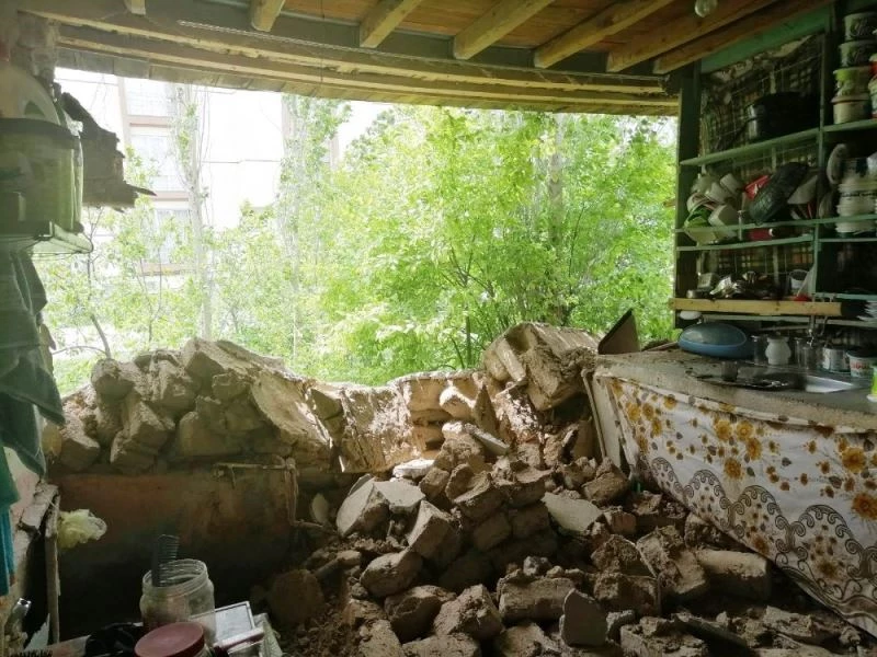 Yabancı uyruklu ailenin kaldığı evin duvarı yıkıldı