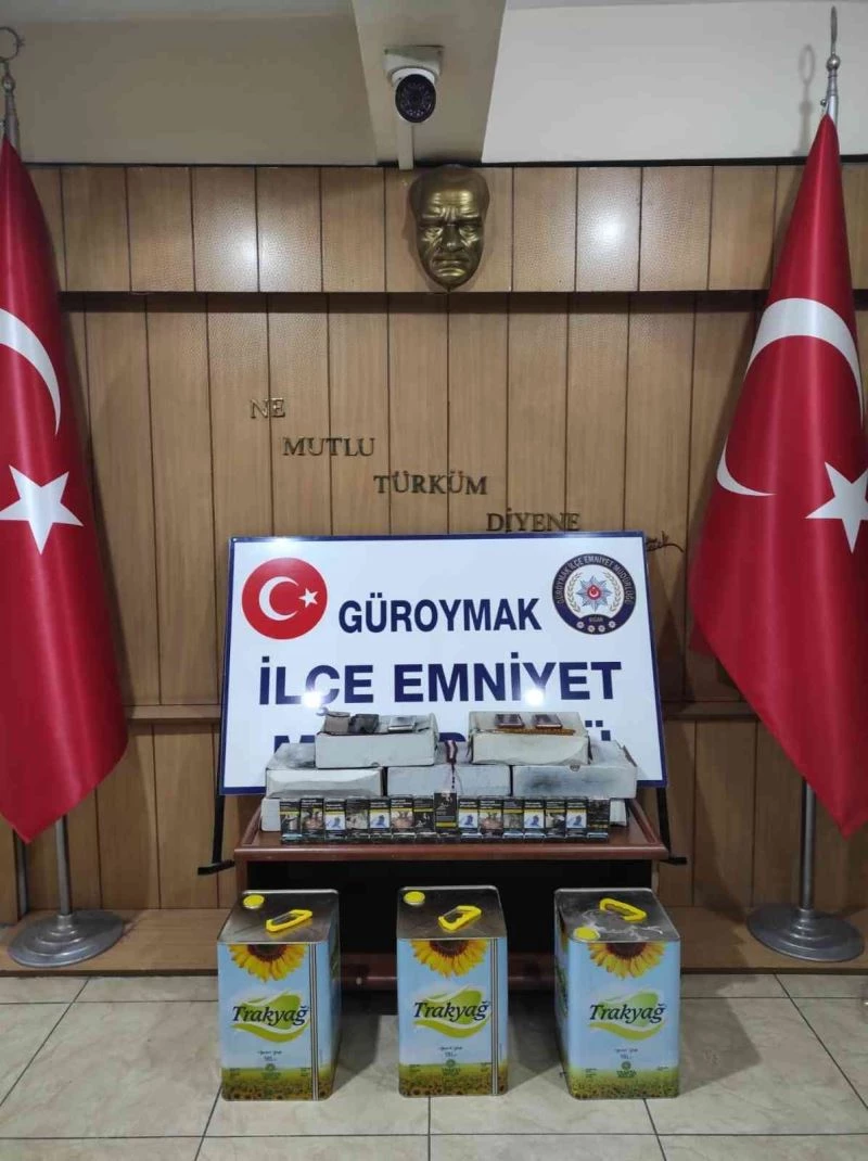 Edinilen bilgiye göre, Güroymak Emniyet Müdürlüğü Suç Önleme ve Soruşturma Büro Amirliği ekiplerinin yapmış oldukları çalışmalar sonucunda, farklı tarihlerde meydana gelen 4 hırsızlık olayı aydınlatıldı. Hırsızlık olayına karışan ve suç eşyalarını satın alan 4 şahsın yakalandığı operasyonda, piyasa değeri yaklaşık 2 bin 400 TL olan ayçiçek yağı ile piyasa değeri 5 bin TL olan toplamda 50 karton sigara ve 8 karton tütün ele geçirildi. Yakalanan şahıslar emniyetteki işlemlerinin ardından adliyeye sevk edildi.