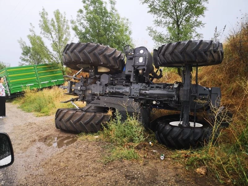 Olay, Tekirdağ’ın Muratlı ilçesinde OSB’de bir akaryakıt istasyonu önünde meydana geldi. İddiaya göre, Nevzat İ. (59) sevk ve idaresindeki traktör, aşırı yağışlardan kayganlaşan zeminin tesiriyle sürücüsünün direksiyon hakimiyetini kaybetmesi neticesinde devrildi. Traktör sürücüsü bir fabrikanın bahçesindeki kanala düştü. İhbar üzerine olay yerine gelen 112 Acil Servis ekipleri sürücüye müdahale ederken, Trafik Şube ekipleri ise yolda güvenlik önlemleri aldı.