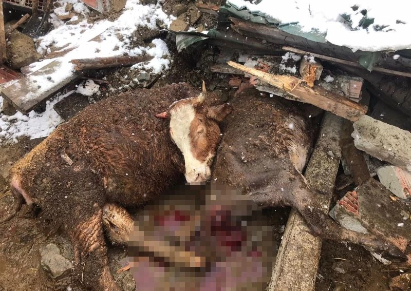 Yağış nedeniyle yıkılan ahırda 3 büyükbaş hayvan telef oldu