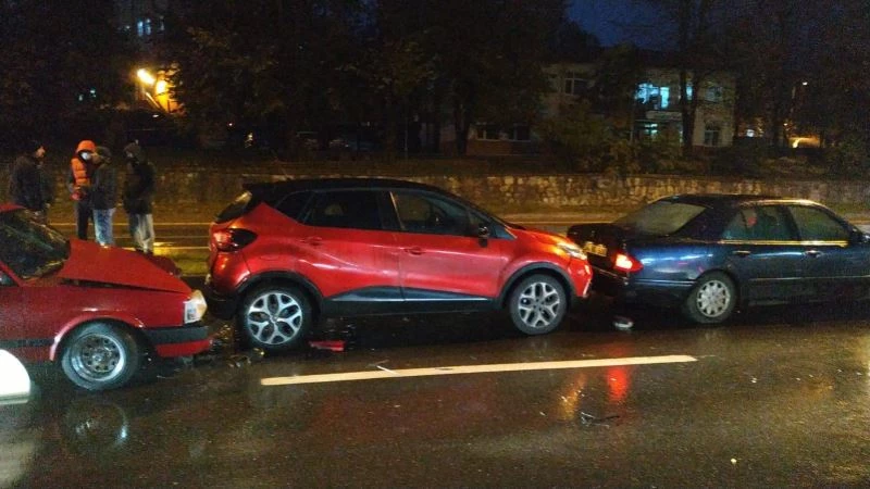 Zonguldak’ın Ereğli ilçesinde yağışlı havanın da etkisiyle zincirleme trafik kazası meydana gelirken 3 araç birbirine girdi.