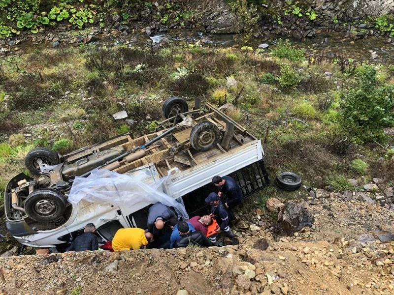 Yağmur nedeniyle kayganlaşan yolda kontrolden çıkıp dereye yuvarlandı: 2 yaralı