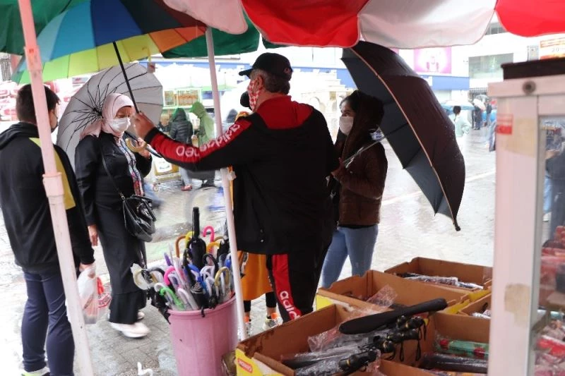 Samsun’da yağan yağmurla birlikte şemsiye satışları da arttı.