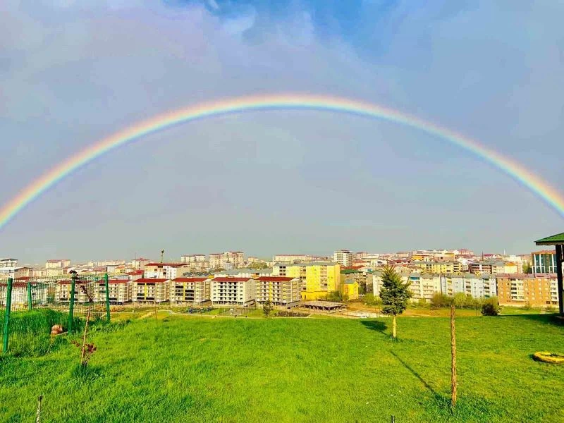 Muş’ta yağmur sonrası ortaya çıkan gökkuşağı görsel şölen sundu.