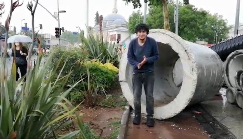 İstanbul’da etkili olan sağanak yağış ilginç manzaralar oluşturdu. Beşiktaş’ya yağmurdan kaçmaya çalışan vatandaşlar, bulabildikleri yerlere sığınmaya çalıştı. Bu sırada bir vatandaşın su künkünün içerisine girerek yağmurdan korunmaya çalışması ilginç görüntüler oluşturdu. O anlar cep telefonu kameralarına yansıdı.