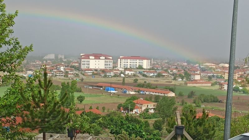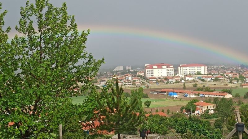 Afyonkarahisar’ın Şuhut ilçesinde sağanak yağışın ardından oluşan gökkuşağı güzel görüntüler oluşturdu.
