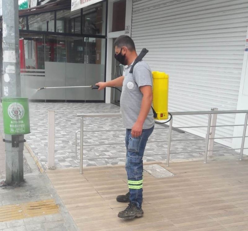 Halkın yoğun olarak kullandığı ve hastalıkların bulaşma ihtimalinin yüksek olduğu tüm alanlarda çalışmaların gerçekleştirildiğini ifade eden Altınova Belediyesi Garaj Amiri Yusuf Yılmaz, “Sokağa çıkma yasağının bitimiyle başlayacak olan yeni mesai gününe ilçemizi hazırladık. Başlangıcından bu yana virüse karşı çok ciddi mücadeleler veriyoruz. İlçe genelini düzenli olarak ilaçlayıp dezenfekte ediyoruz. İlçemizin işlek yerlerine el dezenfektan noktaları oluşturduk. Belediye olarak tüm birimlerimiz bu süreçte görev başında. Öte yandan halkımızın bilinçlenmesine yönelik ilçe geneline afişler asılırken, el ilanları dağıtılıp vatandaşlarımız bilgilendiriliyor. Ancak vatandaşlarımızdan, başlayan normalleşme sürecinde de belirlenen kurallara hassasiyetle uymalarını istiyoruz” dedi.