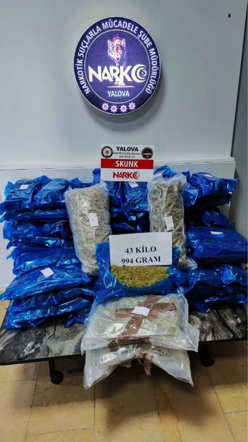 kilogram 994 gram skunk uyuşturucu maddesi ele geçirildi. Zanlılar sorgulanmak üzere Yalova’ya getirilirken, yürütülen çalışmalar kapsamında Yalova’da tır sürücüleriyle bağlantılı şüpheliler M.Y. ve O. A. isimli şahıslar da yakalandı. Bu kişilerin ev ve işyerinde yapılan aramalarda 2,07 gram skunk maddesi ve 75 adet 9mm, 7 adet 7,65mm çapında fişek elde edildi. Gözaltındaki 5 kişinin sorgusunun devam ettiği öğrenildi.