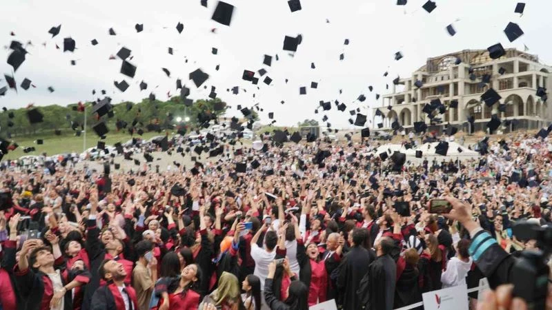 Tören sonunda 3 bin öğrenci keplerini atarak mezuniyetlerini kutladılar.