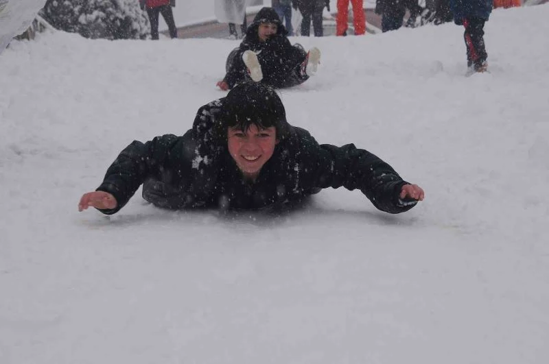Kar yağışının etkili olduğu Paşakent Mahallesi’nde çocuklar kar yağışını eğlenceye çevirdi. Çocuklar kar topunu yanı sıra kayarak bol bol eğlendi. Doyasıya eğlenen çocuklar uzun süredir bu yağışı beklediklerini söyledi.