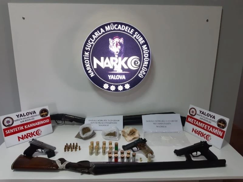 Yalova Emniyet Müdürlüğü Narkotik Suçlarla Mücadele Şubesi tarafından Bağlarbaşı Mahallesi’nde 10 adrese eş zamanlı operasyon düzenlendi. 11 kişinin gözaltına alındığı operasyonda uyuşturucu madde ruhsatsız silahlar ele geçirildi.