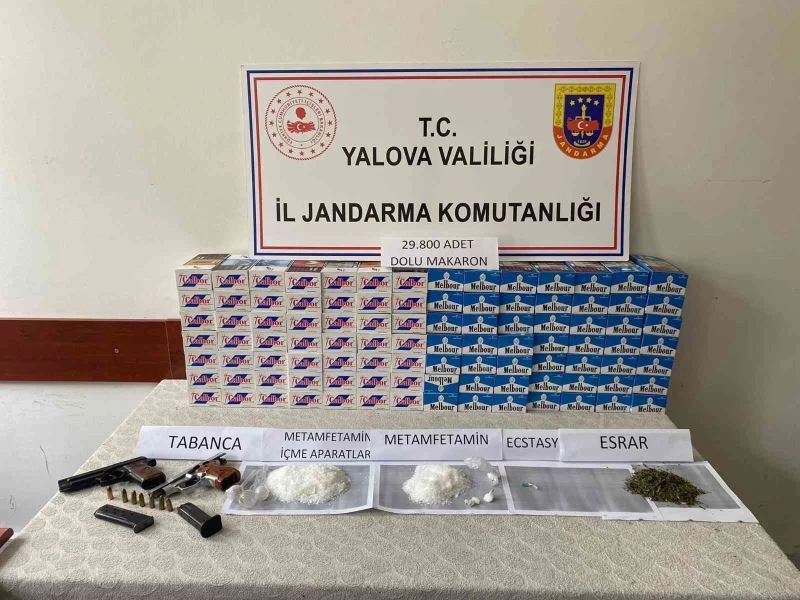 Yalova İl Jandarma Alay Komutanlığı tarafından düzenlenen operasyonlarda gözaltına alınan 15 kişiden 2’si tutuklanırken, 316 gram uyuşturucu madde ve 29 bin 800 adet dolu makaron sigara ele geçirildi.