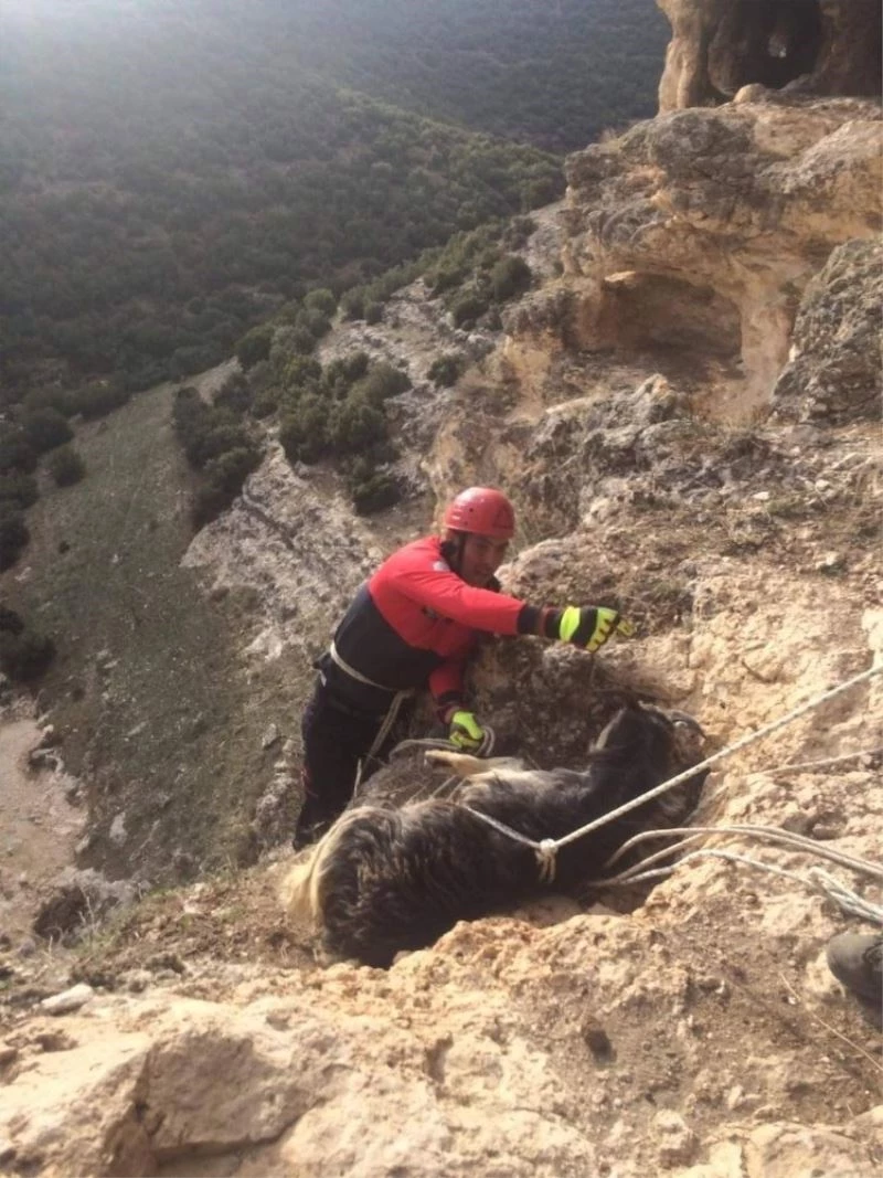 Olay, Güney ilçesi Aşağı çeşme Mahallesinde meydana geldi. Edinilen bilgilere göre, çoban hayvanlarını otlatmak için dağa çıkardı. Bu esnada hayvanların içerisinde bulunan keçiler otlamak için kayalık yamacına doğru ilerlediler. Yamaçtan aşağıya doğru inen keçiler indikleri yerde mahsur kaldı. Çoban keçileri uçurumdan kurtarmak için çaba sarf etse de uğraşları sonuçsuz kaldı. Çoban keçileri kurtaramayacağını anlayınca 112 Acil Çağrı Merkezi’ni arayarak ihbarda bulundu. İhbar üzerine bölgeye itfaiye ekipleri sevk edildi. İtfaiye ekipleri bölgeye gelerek halat yardımıyla yamaçtan aşağıya indi. Keçilerin korkmaması için titizce çalışan ekipler, hayvanların gövdelerine ve boynuzlarına halat bağlayarak yukarıya doğru çekip kurtardı. Çoban, keçilerini yamaçtan çıkararak kurtaran itfaiye ekiplerine teşekkür etti.