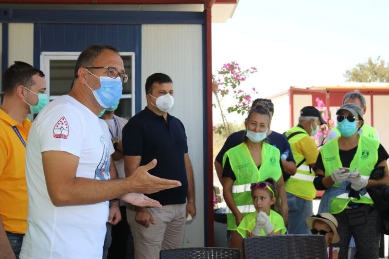 Temizlik öncesi, alanda yaşanacak olası bir yangına acil müdahale edilebilecek şekilde hazırlanan Afet Alanları Destekleme Merkezi gezildi. Çevre gönüllüleri, hazırlanan konteyner yaşam alanlarını ve acil müdahale odalarını inceleyerek yetkililerden bilgi aldı.