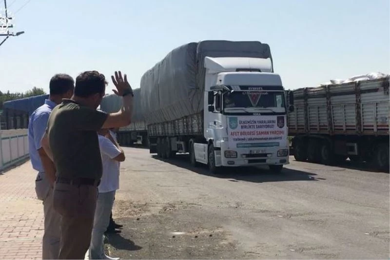 Yangın bölgesindeki çiftçilere 5 tır saman gönderildi