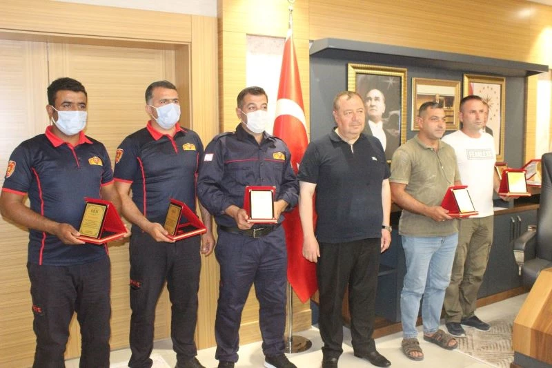 Kilis’te, yangın bölgelerinde görev yapan İtfaiye Müdürlüğü personeli ödüllendirildi.