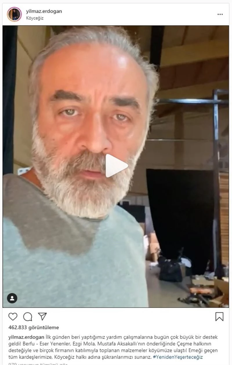 Erdoğan paylaşımın altında ise, “İlk günden beri yaptığımız yardım çalışmalarına bugün çok büyük bir destek geldi. Berfu - Eser Yenenler, Ezgi Mola, Mustafa Aksakallı’nın önderliğinde Çeşme halkının desteğiyle ve birçok firmanın katılımıyla toplanan malzemeler köyümüze ulaştı! Emeği geçen tüm kardeşlerimize, Köyceğiz halkı adına şükranlarımızı sunarız. Yeniden Yeşerteceğiz” notunu düştü.