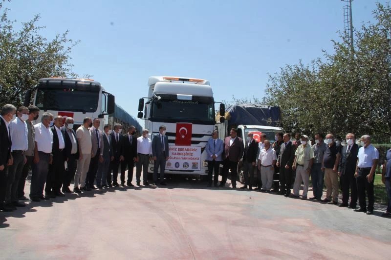 Çorum Valiliği öncülüğünde başlatılan belediye ve sivil toplum kuruluşlarının da destek verdiği kampanya kapsamında kısada sürede toplanan 6 tır ve 2 kamyondan oluşan 176 ton orman yangınlarından etkilenen ve mağdur olan vatandaşların büyük ve küçükbaş hayvanlarının beslenebilmesi için Muğla’ya gönderildi.