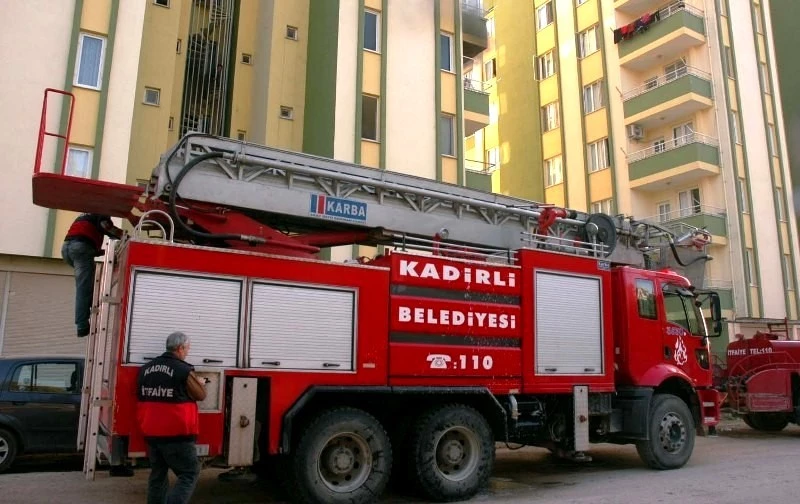 Osmaniye?nin Kadirli ilçesinde bir apartmanda çıkan yangına geç müdahale eden itfaiyeye vatandaşlardan tepki gösterdi.Şehit Kansu Küçükateş Mahallesi Cansum-2 sitesinin 4. katında Kadir Kastal?ın evinde yangın çıktı. Vatandaşların itfaiyeye haber vermesi üzerine olay yerine gelen ekipler 4. kattaki yanan eve müdahale etmek için yangın merdivenlerini kullanmak istedi. Merdivenlerden çıkan itfaiyeci oradan giremeyince bu sefer olay yerine merdivenli itfaiye aracı çağrıldı. Yangın yerine gelen merdivenli itfaiye aracı 4. kattaki yanan eve merdivenini uzatarak ulaştı fakat bu seferde araçta müdahale edecek hortum bulunmayınca diğer itfaiye aracının hortumu kullanılmak istendi. Merdivenli araca çıkan itfaiye eri kendisine uzatılan hortumu alarak merdivenden çıkarak yanan eve ulaştı. İtfaiyecinin ?su ver? işaretinden sonra hortuma su verildi fakat bu seferde su hortumdan değil aşağıda aracın üzerinde bulunan su tabancasından çıktı. Vatandaşların tepkisi üzerine itfaiyeciler ne yapacağını şaşırdı. Sonunda yangına su sıkmayı başaran itfaiye erleri oksijen tüplerini takmayınca zor anlar yaşadı.
