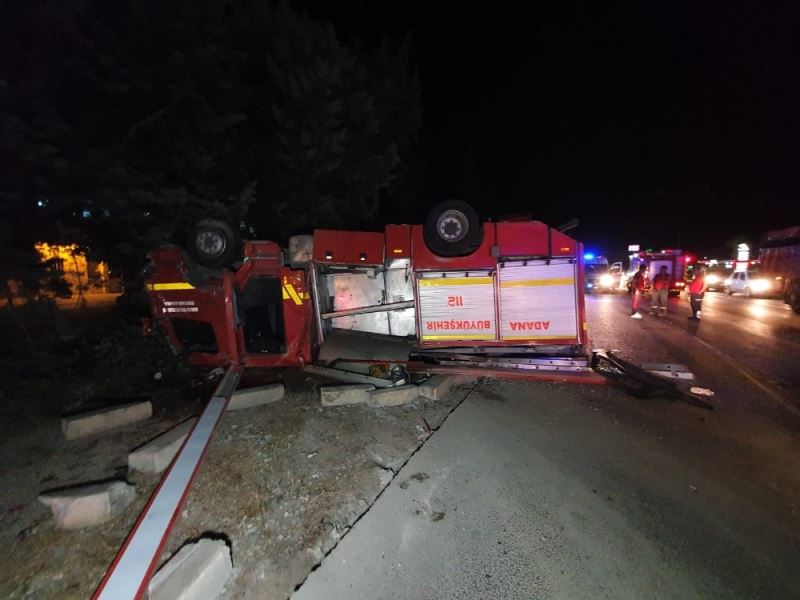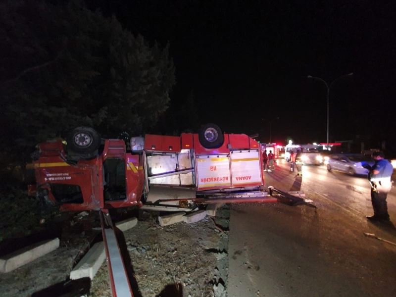 Adana’da çıkan yangına müdahale etmek üzere yola çıkan itfaiye ekipleri kaza yaptı. Kazada 3 itfaiye eri yaralandı.