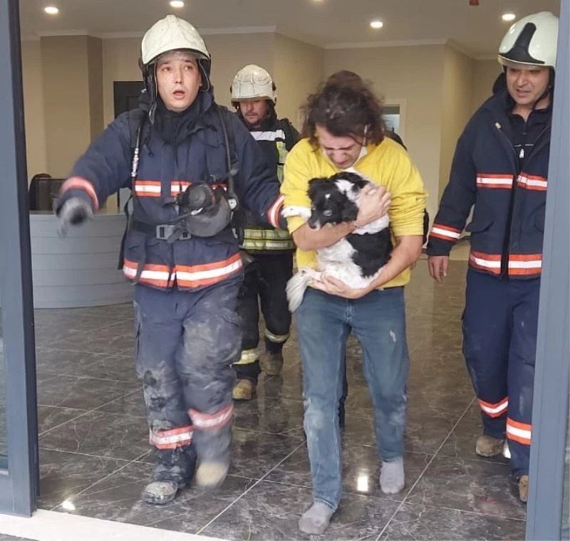 Manisa’nın Yunusemre ilçesindeki 96 daireli bir rezidansın 2. katında çıkan yangın bir daireyi kullanılamaz hale getirdi. Dairede kiracı olarak oturan Merter Kahvecigil’in köpeğinin ortalarda olmadığını belirtmesi üzerine itfaiye ekipleri yangın anında rezidansın üst katlarına çıkan köpeği bularak sahibine teslim etti. Köpeğinin yangında zarar gördüğünü düşünen genç adam ise köpeğine kavuşunca sarılarak kucağından hiç indirmedi.