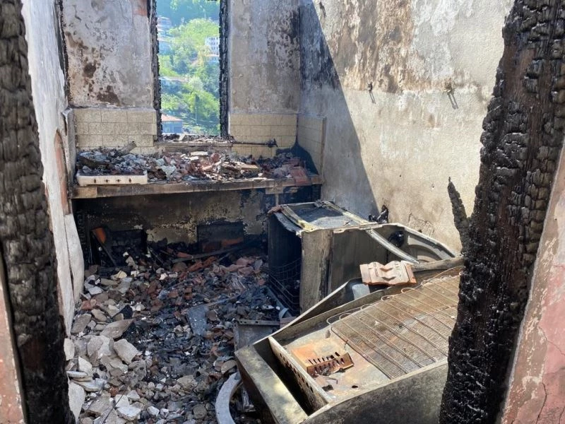 Zonguldak’ın Kilimli İlçesi Karadon Beldesinde iki katlı bir binanın en üst katından çıkan yangın nedeniyle ev kullanılmaz hale geldi.