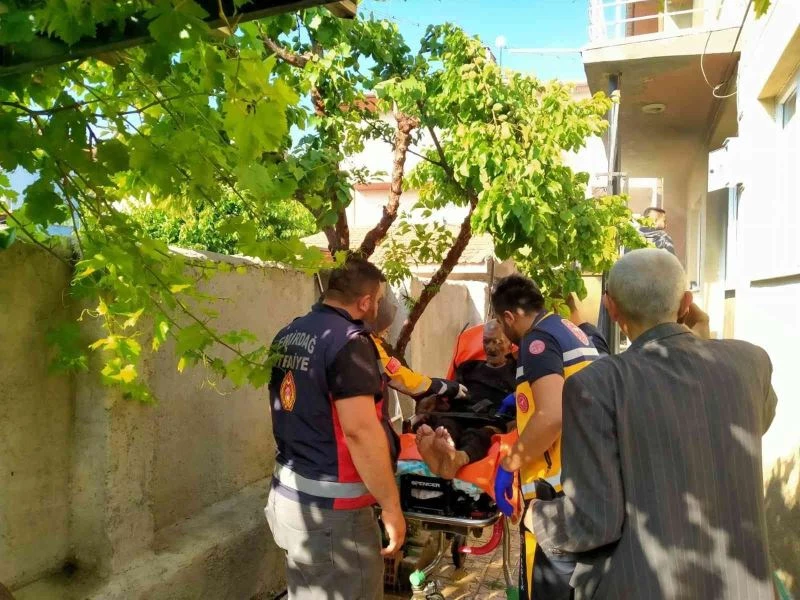 Yangında evde mahsur kalan yaşlı adamı itfaiye kurtardı