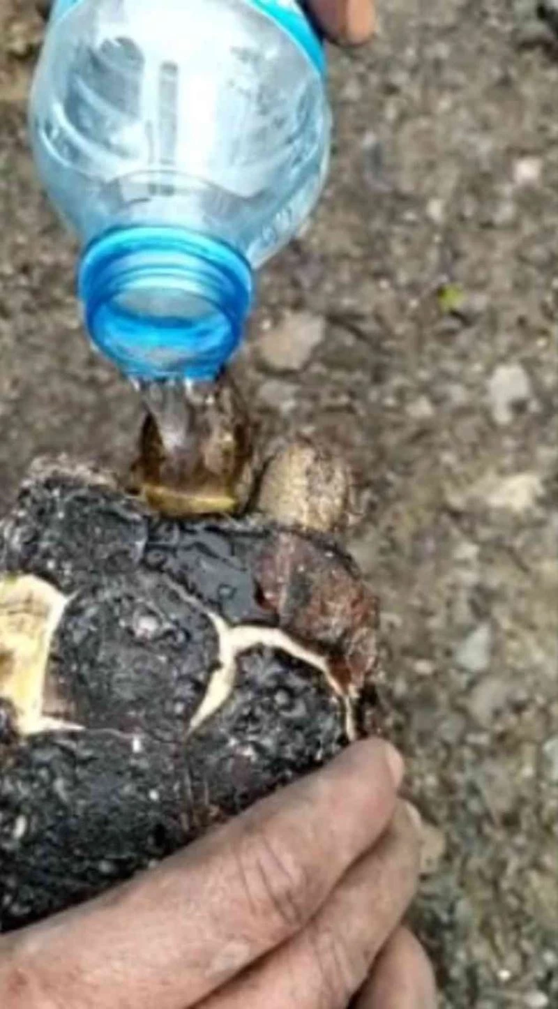 Yangında mahsur kalan kaplumbağa yanmaktan son anda kurtarıldı