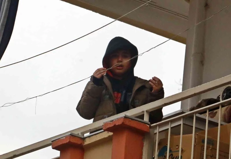 Bu sırada yoğun dumandan dolayı anneannesi Nuran Yakut ile birlikte balkona çıkan 8 yaşındaki ilkokul ikinci sınıf öğrencisi Deniz Çağan Özdeş, dumanları görünce tedirgin oldu. Balkonda mahsur kalan Deniz, ellerini açıp ağlayarak dua ettiği görülürken, alevler kısa süre sonra itfaiye ekiplerince kontrol altına alındı. Tedirginliği devam eden ufaklığı fark eden itfaiye eri Zişan Tanık, ‘Yangın söndü ufaklık. Korkma tamam mı’ sözleriyle teselli etti.