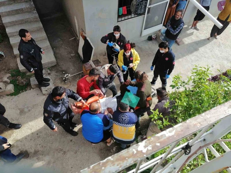 Dumandan etkilenen kadın ambulansla hastaneye götürülerek tedavi altına alındı.